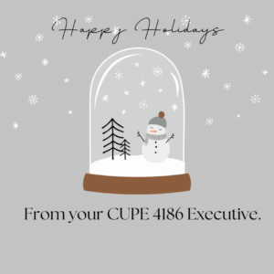 I wanted to take this opportunity to with everyone a safe and happy holiday season from the CUPE 4186 Executive.